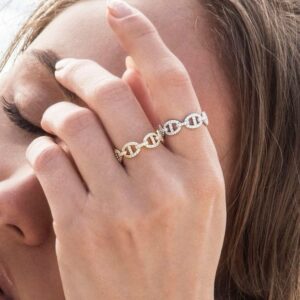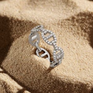 This ring is handcrafted from sterling silver and microset with white cubic zirconia. 2-year worldwide warranty